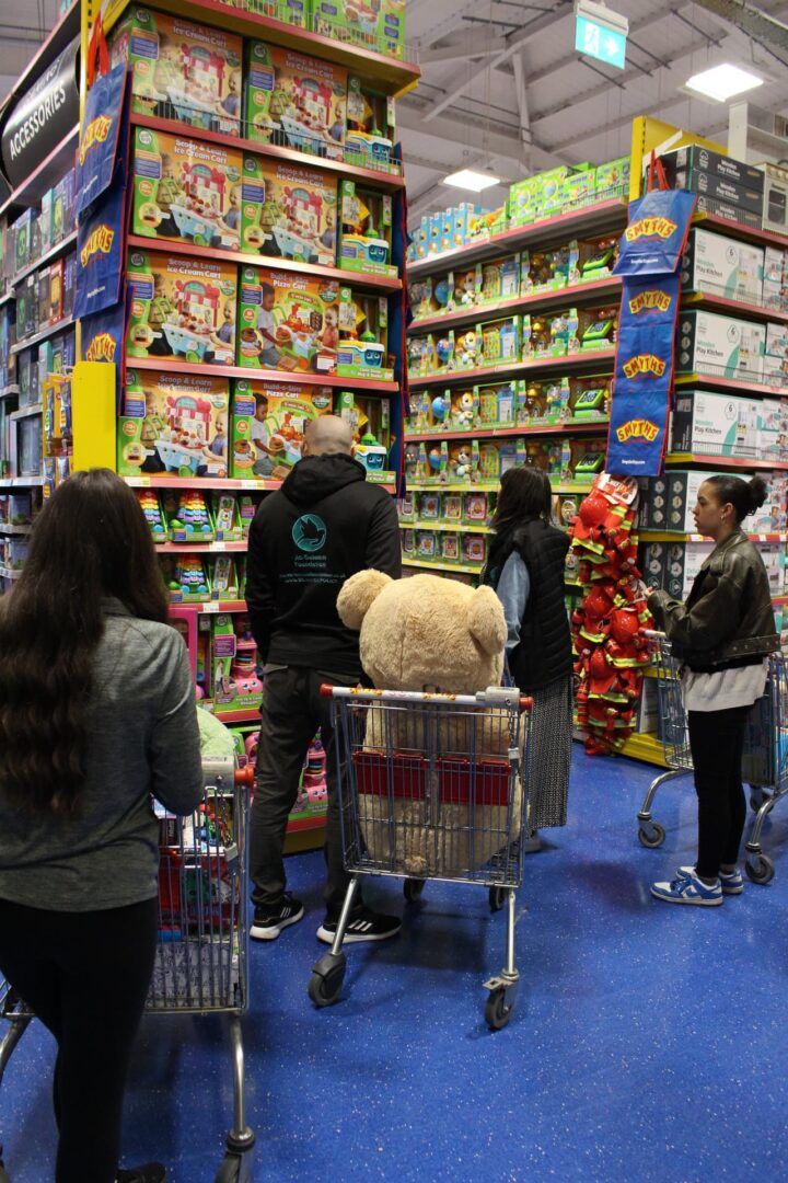 We organised a substantial purchase of toys and essential goods, spending £1,100 on toys from Smyths Toys, alongside an additional £100 on toiletries and sanitation items, including chocolates and a card for the staff too.